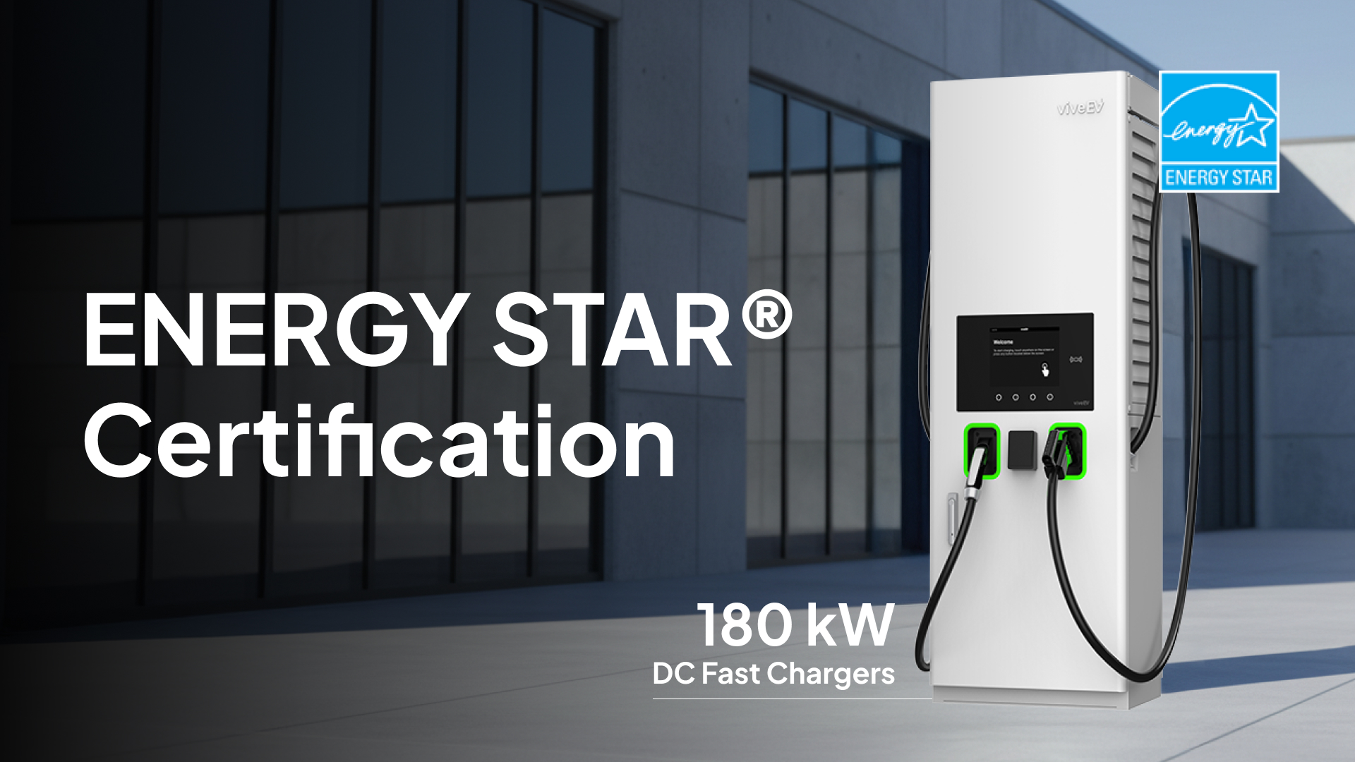 ENERGY STAR® Certification Achieved: TÜV Rheinland has verified that viveEV’s VE180U Series 180 kW DC fast chargers meet the stringent ENERGY STAR® EVSE program requirements.